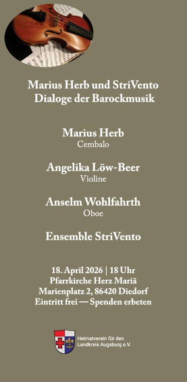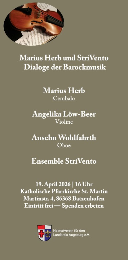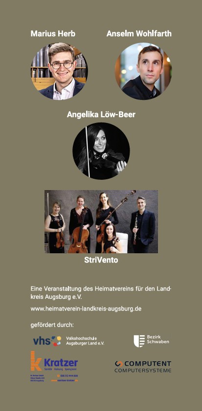 Der Heimatverein für den Landkreis Augsburg e.V. macht auf folgende Konzerte und Ausstellungen aufmerksam: